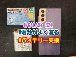こんにちは。 がじぇっと道の代表、福田です。 今日はGalaxy S21のバッテリー交換のご依頼です。 2時間ほどで修理完了です。