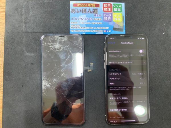 こちらのiPhoneXSやiPhoneXSMaxも画面が割れて一部タッチの反応が悪くなっていました。