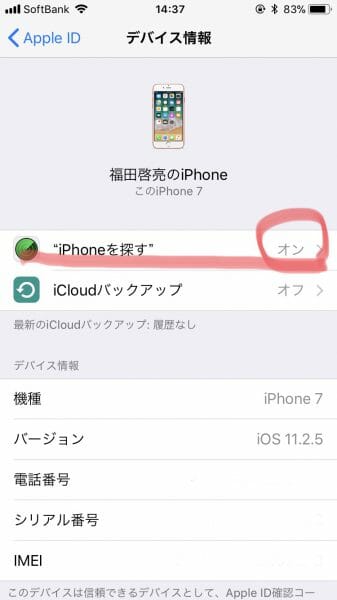 iPhoneを探すをオフに
