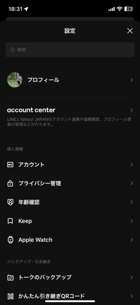 もし[account center]の表示がない場合はLineのバージョンが古い可能性があります。