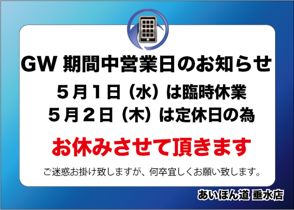 お求めの際は、是非あいほん道 垂水店へお越しくださいね。