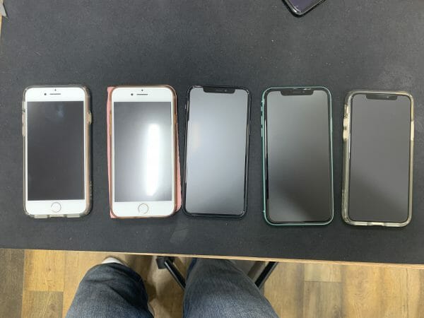 続いては合計5台のiPhoneのフィルム貼りです。