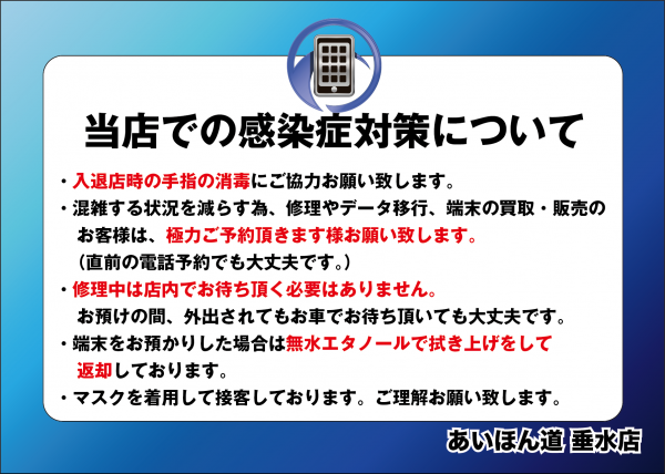 引き続き安心してお客様にご利用頂けるよう、皆様のご協力をお願い致します。